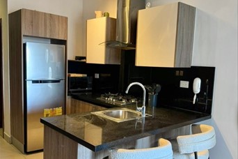 1 habitación con baño Baño de visita Cocina modular completamente equipada Closet para lavadora/secadora Balcón 1 parqueo techado Lobby amoblado y climatizado 2 Ascensores de última generación. Salones multiusos con TV Piscina Terraza techada Terraza destechada Bar en el área social Bbq Gimnasio Salon de reuniones Planta eléctrica Portón eléctrico Parqueo techado Seguridad 24horas Cámaras de vigilancia