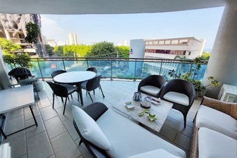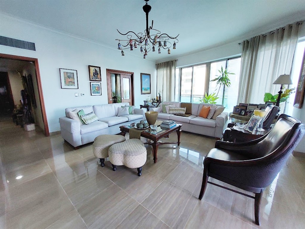 Apartamento amplio en torre exclusiva de la Esperilla. Cuenta con acceso privado al apartamento, con un hall de entrada, recibidor, sala amplia, comedor cerrado, estudio, gran balcón-terraza, tres habitaciones cada una con su baño y walk-in closet forrado en cedro, cocina remodelada moderna con dos despensas, cocina caliente, área de lavado, cuarto de servicio, oficina, 2 parqueos techados paralelos y locker. Terminación de primera con pisos en mármol y madera caoba. Cuarto para vajillas y closet para la ropa blanca. Sistema de purificación de agua del edificio y filtro de agua en la cocina. Aires splits en las habitaciones y estudio de bajo consumo. Este apartamento en La Esperilla, ofrece un estilo de vida de lujo con sus 332 m2 de construcción. Las comodidades de la torre incluyen lobby de lujo con dos ascensores y ascensor de servicio, y en sus áreas sociales incluye piscina, gimnasio, sauna, área infantil, salón para eventos con área de bar, baños.. Ideal para quienes buscan confort y exclusividad en una ubicación privilegiada.