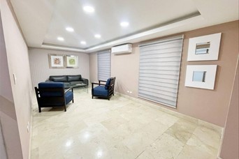 RENTA de hermoso apartamento en La Esperilla Características 2 habitaciones 2.5 baños Sala Comedor Cocina Cerrada Balcón Área de lavado Cuarto de servicio 2 parqueos lineales Características de la Torre: Lobby amueblado y climatizado 4 Ascensores Gimnasio Salón multiuso Área de Niños Planta Eléctrica Full Gas común Intercom Portero Portón eléctrico Seguridad 24 Horas Precio de Alquiler: US$ 1,300 (Mantenimiento incluido) Informacion Aracelis Alvarado