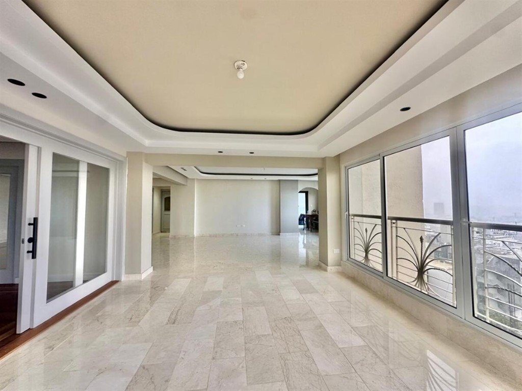 310 M2 netos. 334 M2 totales. Dos (2) parqueos techados. Un (1) locker. Tres (3) habitaciones. 3.5 baños. Sala. Comedor. Cocina. Estudio. Área de lavado. Habitación de servicio con baño. Dos (2) ascensores. Cristales completos antirruido. *Precio incluye línea blanca y aires acondicionados. *MANTENIMIENTO: RD$17,500.00 *PRECIO DE VENTA: US$550,000.00