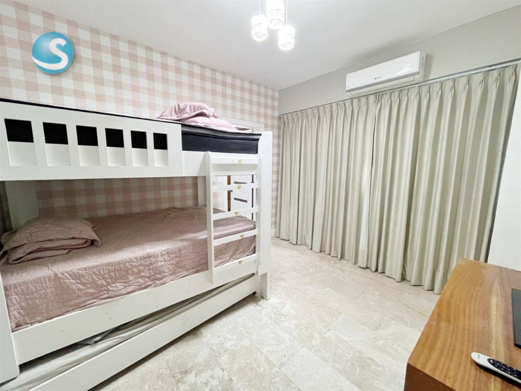 VENTA Totalmente Amueblada en La Esperilla Características Totalmente amueblado 255 mt2 1 apartamento por piso 3 habitaciones (principal con WC) 3.5 Baños Cocina cerrada Amplia Sala Comedor Shutters Balcón en L Área de lavado Cuarto de servicio 2 parqueos paralelos 2 Lockers Características de la Torre: Lobby amueblado Ascensor Planta Eléctrica Full Gas común Intercom Portero Portón eléctrico Seguridad 24 Horas Precio: US$ 360,000