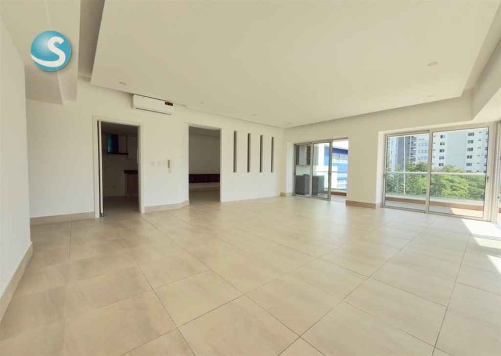 Moderno y amplio apartamento en ALQUILER en zona torre premium. AMENIDADES 3 cómodas habitaciones con vestidor y baño Baño de visitar Recibidor Sala Comedor Cocina Area de lavado y cto de servicio Balcon Terraza en L Estudio Piscina Lobby 3 parqueos techados Locker Parqueos de visitas Dos Ascensores Gimnasio equipado Precio US$2,600 Mantenimiento Incluido Contacto JOAN BAEZ 809-449-8584