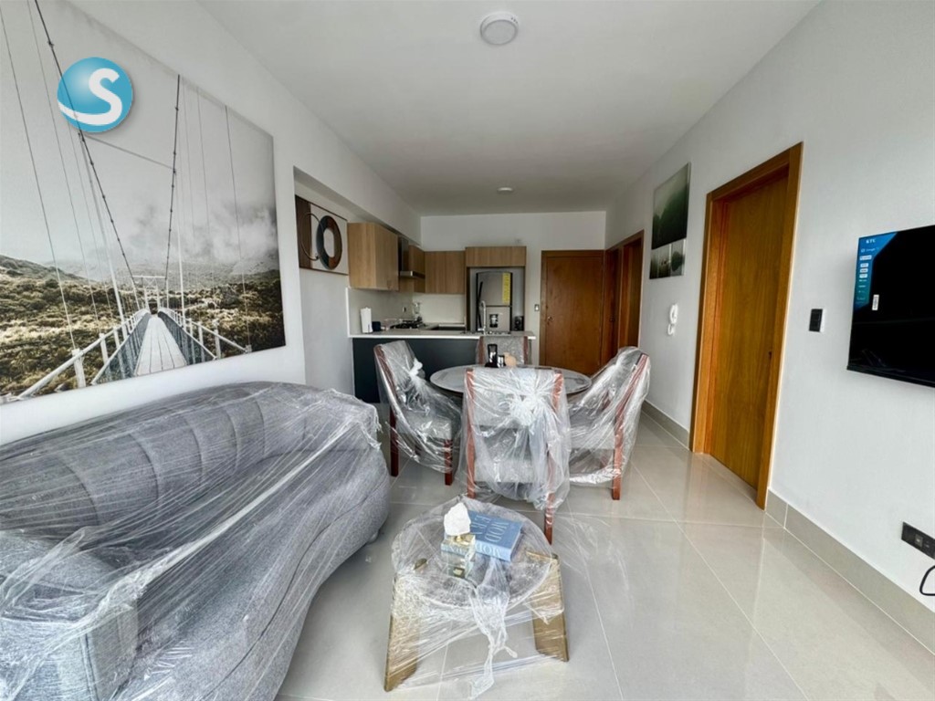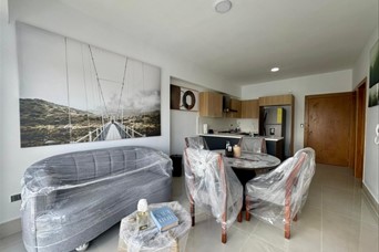 CARACTERISTICAS: • 1 Habitación • 2 Baños • Sala • Comedor • Cocina • Balcón • Área de lavado • 1 Parqueo Amenidades: • Lobby amoblado y climatizado • 5 Ascensores • Terraza techada y destechada • Piscina • picuzzi • Área de Bbq • Gimnasio • Salón de eventos • Cine • ice bath • Área de niños • Área de juegos para adultos • Área libre de ejercicios