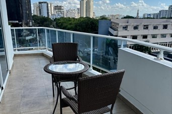 Apto. Con vista al mar Sala comedor Balcón amplio Cocina Habitación Baño Un parqueo techado Locker Área social con: Piscina Gimnasio Área de juegos de mesas Precio de venta: US170,000 Precio alquiler corta temporadas: US900 dos, tres meses, etc Precio alquiler largas temporadas: US1,050