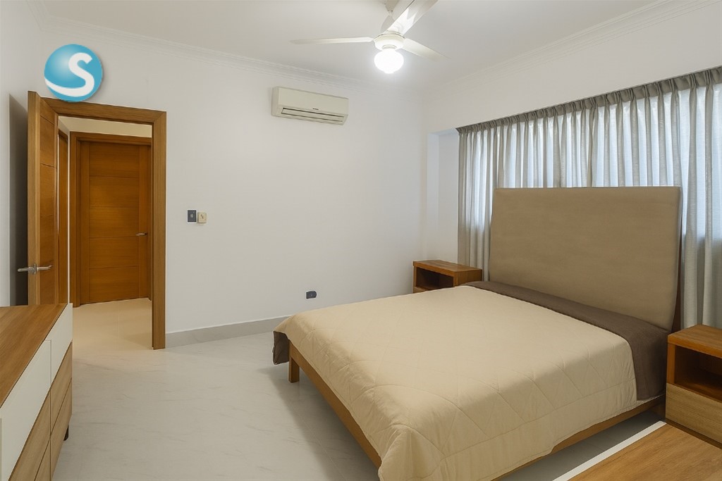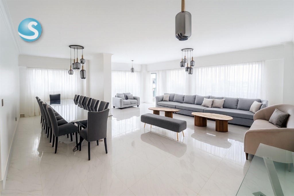 Apartamento Amueblado de Lujo en La Esperilla – 240 m² · Vista Panorámica al Mar Caribe Datos Generales Localización: Santo Domingo Centro > La Esperilla Condición: Amueblado / En excelente estado Uso Actual: Residencial Construcción: 240 m² Niveles/Piso: Alto, con vista panorámica Ascensores: Sí Año de Construcción: Edificable: No aplica Comodidades - Amplio balcón con vista a la ciudad y al Mar Caribe - 3 habitaciones con baño privado y walk-in closet - Sala familiar / estar de TV - Sala principal de gran tamaño - Comedor para 10 personas - Moderna cocina con desayunador - Área de lavado con lavadora y secadora - Recibidor elegante - Baño de visitas - Aires acondicionados - Parqueo - Seguridad 24 horas Observaciones Apartamento totalmente amueblado, decorado con líneas modernas y espacios amplios que combinan luz natural, confort y elegancia. Su impresionante balcón con vista al mar crea un ambiente único para disfrutar atardeceres espectaculares. Ubicado en una de las zonas más exclusivas y céntricas de Santo Domingo, este inmueble ofrece una excelente distribución interior: 3 habitaciones, cada una con su baño y walk-in closet Sala doble con ventanales de piso a techo Comedor para 10 personas con iluminación contemporánea Cocina moderna con desayunador y amplios gabinetes Family room ideal para TV o estudio Acabados de lujo en baños, espejos LED, cabinas de ducha en cristal y cerámicas premium Este apartamento es ideal para familias o ejecutivos que buscan vivir en un espacio amplio, elegante y con una vista inigualable. Disfrute de una ubicación privilegiada en La Esperilla, a pasos de centros culturales, parques, restaurantes, universidades y vías principales de la ciudad.