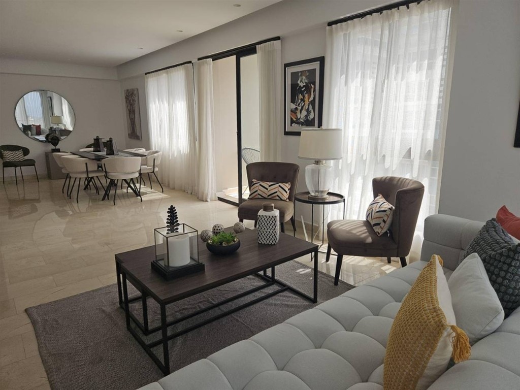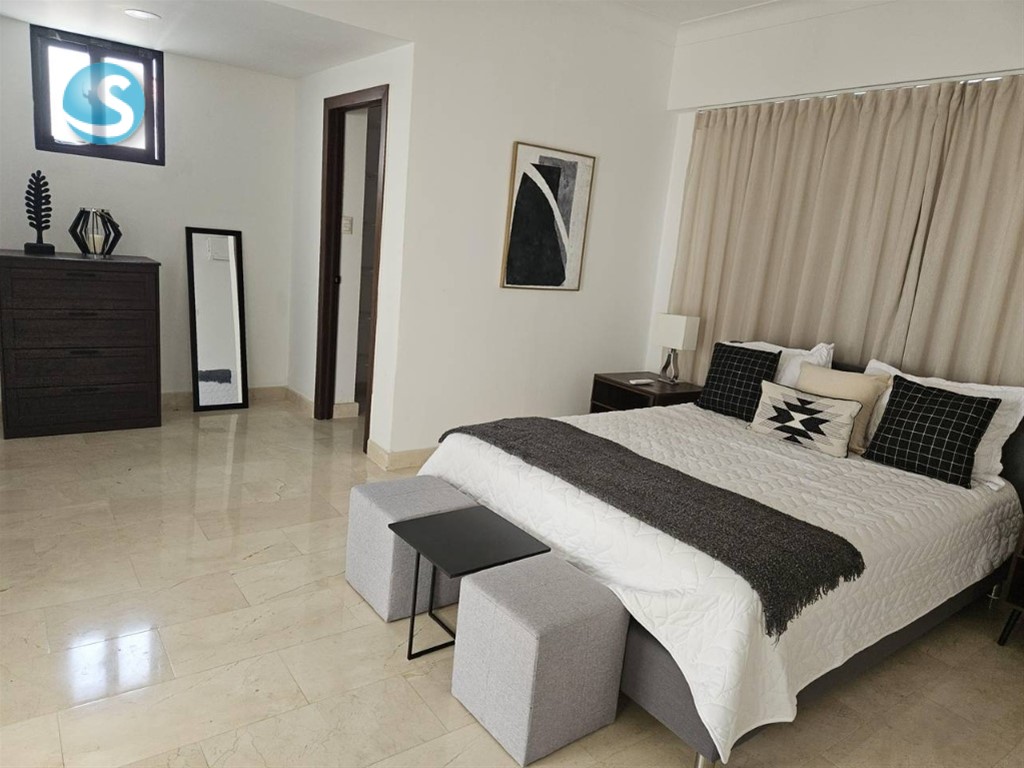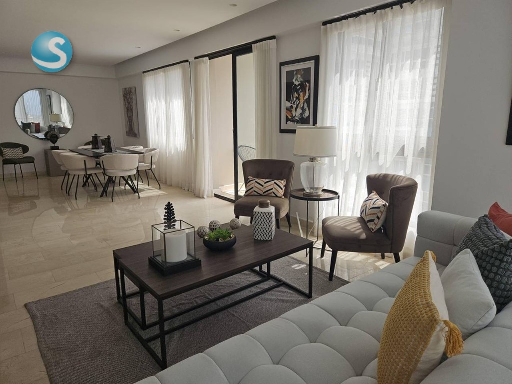 Moderno apartamento en venta en La Esperilla, con espectacular vista al mar. 85 metros 1 habitación con su baño Recibidor Sala, comedor Balcón Cocina, área lavado 1 parqueo techado Torre con área social Jacuzzi Gimnasio entre otros US$198 mil #2463
