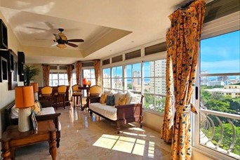 TORRE LA PROVENCE LA ESPERILLA Precio de Venta: US$650,000 Venta Amueblado Completo US$850,000 Alquiler Vacio US$3,800 Alquiler Amueblado Completo US$5,500 Apartamento de 415mts 4 hab con closset 4.5baños Nivel 8 Principal con jacuzzi Estar familiar Estudio Sala bar Sala familiar Comedor 2 ascensores 3 parqueos techados Planta full Recibidor Aires centrales controlados Persianas en todas las ventanas Camaras de seguridad 2 cocinas Cuarto de servicio con baño Elevador del servicio y de carga Area de lavado Hermosa vista a la ciudad y mar caribe 415 mts de pisos y mármoles, estucos en las paredes frontales, jampas decorativas en las puertas principales en caoba #2182