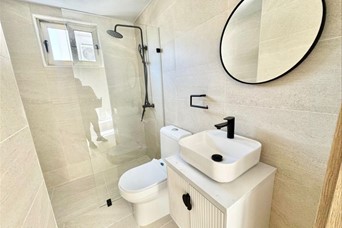 Alquiler de moderno apartamento en La Esperilla 130 mts 2 habitaciones 2.5 baños Sala Comedor Cocina Balcón Área de lavado Habitación de servicio 2 parqueos Escalera de emergencia Incluye 3 aires acondicionados Amenidades y características de la torre Portón eléctrico Ascensor Luz 24 hrs Cámaras de seguridad Planta full Gimnasio Piscina Lobby climatizado Terraza común Gas común Precio de alquiler US$1,400 MAR. C.