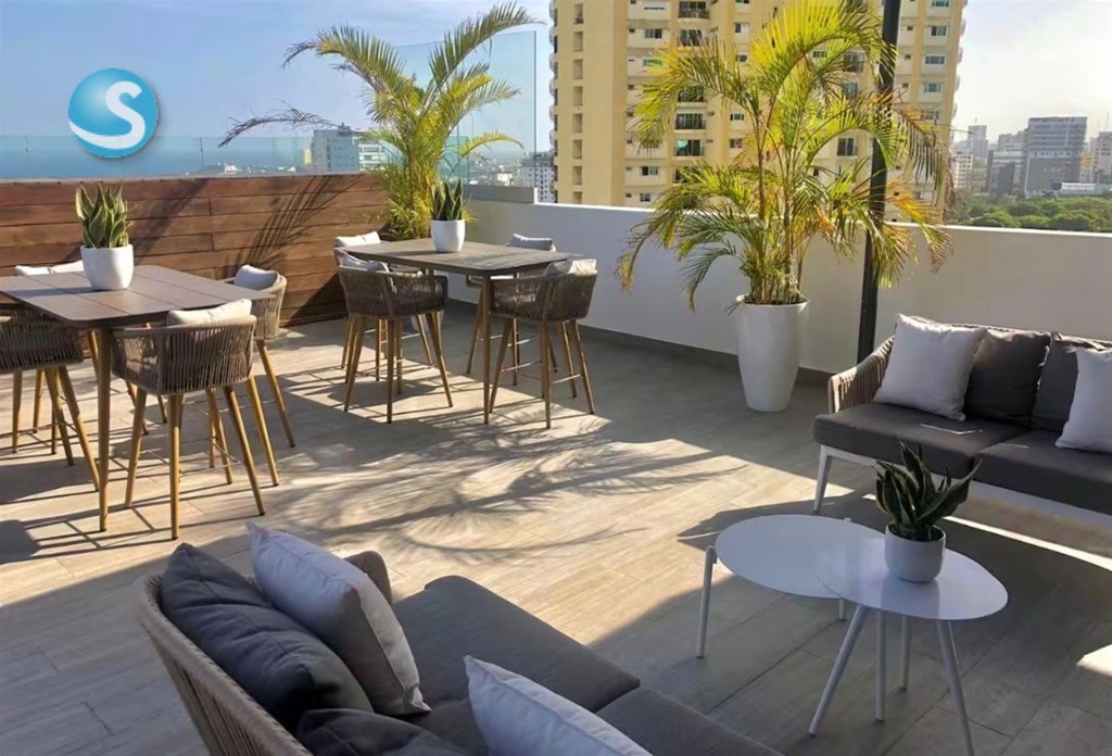 APARTAMENTO EN VENTA – LA ESPERILLA; Próximo al Parque Iberoamericano. 48m² netos | Nivel 13 1 habitación | 1.5 baños Sala / comedor | Cocina | Balcón 1 parqueo techado Totalmente amueblado Amenidades del residencial: • Lobby climatizado • 2 ascensores • Piscina infinity • Terraza • Salón de reuniones • Área de niños • Sala de cine • Gas común • Seguridad 24/7 • Planta eléctrica Precio de venta amueblado: US$170,000 Mantenimiento: RD$8,400
