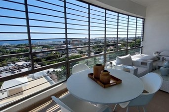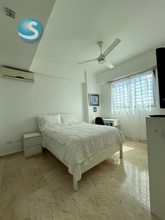 Piso 8, Espectacular Vista al Mar, Apartamento en Venta Amueblado o Vacio, 3 habitaciones. - Terraza balcón desde la habitación principal hasta la sala - Sala - Comedor - 3 habitaciones con sus baños - Baño visita - Cocina, - Area de Lavado - Cuarto de servicio con su baño - Locker grande en el primer piso - 202 mts2 netos - 4 parqueos La Torre cuenta con las siguientes amenidades: - Recepción de Lujo - 3 ascensores - 12 parqueos de visita - Camara de seguridad - Planta Full - Gas común - Area de gazebo con su terraza grande para actividades - Area de juegos - Ducto de basura - Guardian de Seguridad Nota: - La Torre no acepta Airbnb Precio Venta Amueblado: US$530,000 Precio Venta Vacio: US$515,000