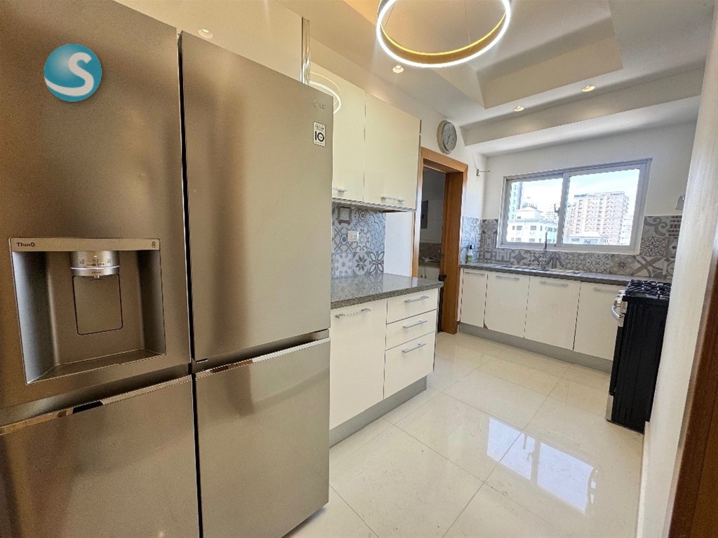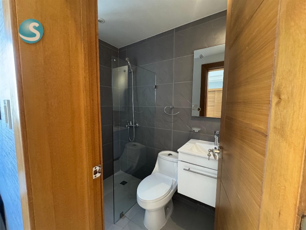 2 Habitaciones cada una con su baño. Habitación principal con walk in closet Baño de visitas Sala Comedor Cocina cerrada Balcón integrado Dos parqueos paralelos Área de lavado Cuarto de servicio Amplio Locker Línea blanca incluída (Nevera, Estufa con horno, Extractor, Lavadora, Secadora, 2 Aires acondicionados) Amenidades de la Torre Seguridad Planta full Lobby climatizado Ascensor Gimnasio Salón de eventos
