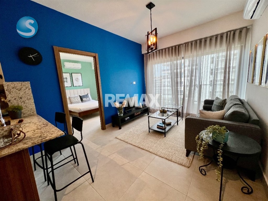 APARTAMENTO-ALQUILER AMUEBLADO-ESPERILLA, 5to. nivel, 55.09 metros, sala, comedor, cocina con desayunador, área lavado, 1 habitación, con su baño, baño de visita, closet para ropa blanca, 2 parqueos lineales, balconcito, lobby climatizado, piscina, gimnasio completamente equipado, área de juegos infantiles, salón de reuniones, 2 ascensores, 1 ascensor de carga, planta eléctrica de emergencia, portón eléctrico, seguridad 24/7, PRECIO DE ALQUILER US$1,050.00 // RE/MAX/ID:188687