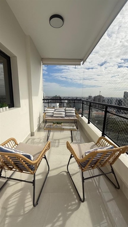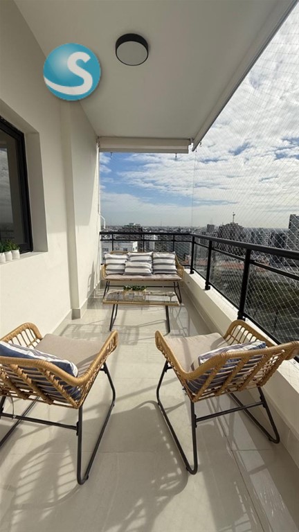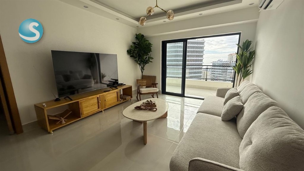 Apartamento totalmente amueblado en el exclusivo sector de Esperilla ,ubicado en un piso alto con impresionante vista al mar y la ciudad. Cuenta con 2 comodas habitaciones, 2 baños modernos, amplio balcon ideal para disfrutar la brisa y la vista. 2 amplios parqueos area social completa en el ultimo nivel