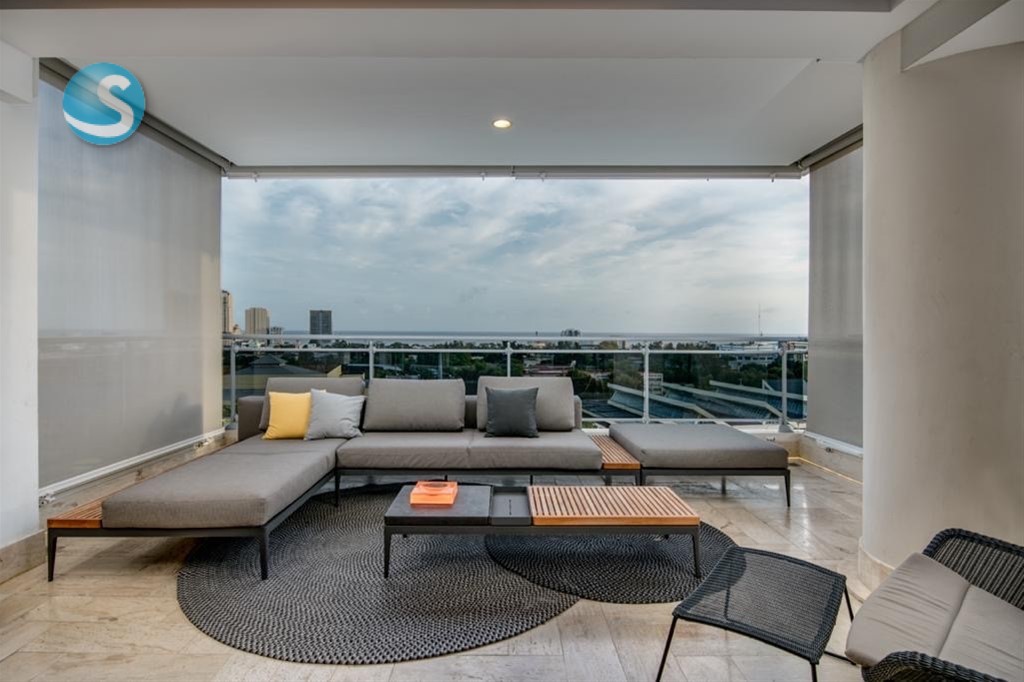 Exclusivo apartamento en venta, ubicado en el sector La Esperilla Características: 315 m2 3 habitaciones con walk in closet 3.5 baños Sala Comedor Balcon amplio tipo terraza Estudio Family room con terraza Cocina fría Cocina caliente Shutter de seguridad en ambas entradas 3 parqueos Locker de 15 metros frente al parqueo 2 apartamentos por nivel Características del área social: Piscina Gimnasio Sala de cine Terraza Salon de eventos