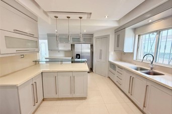 Alquiler con línea blanca de espectacular aparamento en Bella Vista Piso 2 320 mts 3 habitaciones 3.5 baños Sala Comedor Desayunador Estar familiar Estudio Cocina Closet de ropa blanca Locker Balcón Área de lavado Habitación de servicio 2 parqueos paralelos Terminaciones Pisos en mármol Madera en caoba Cornisas en sheet rock y yeso Hierros Intercom Amenidades y características de la torre Portón eléctrico 2 Ascensores Luz 24 hrs Cámaras de seguridad 2 Plantas full Área de juegos Gimnasio Salón Multiuso Lobby climatizado Terraza común Gas común Pozo Cisterna Precio de alquiler US$3,800