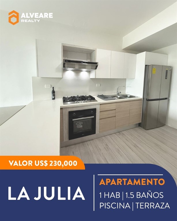 ? Torre lujosa y acogedora ubicada en la Julia, ideal para tu nuevo comienzo ? ?? Piso 10 ?? 62 m² ?? Amueblado ?? US$230,000 venta ?? Características principales: ??? 1 Habitación ?? 1.5 Baños ?? Balcón con malla de seguridad ?? Área de lavado ??? Locker privado ?? 1 Parqueo Techado ?? Amenidades de lujo: ?? Área social ?? Elevadores ????? Lobby con recepción ?? Salón de eventos ?? Piscina ?? Gimnasio ?? Terraza con vista ?? Área de juegos ??? Acabados premium: ??? Cocinas modulares ?? Perfilería europea ?? Iluminación natural excelente ?? Piso en porcelanato ?? Baños con cerámica importada ?? Tope en granito natural ¡Vive con estilo, vive con altura! ????? ¡Contáctanos para más información!