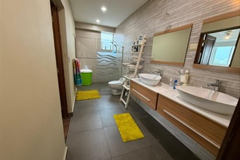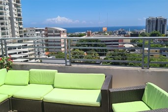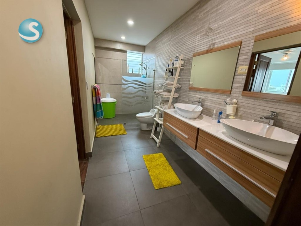 4 habitaciones ( 3 de ellas con WC) 311.38 mts 3 parqueos Balcón Terraza con Jacuzzi Family room Sala de estar Sala Comedor Cocina Cuarto servicio Medio baño en ambos pisos Jacuzzi Vista al mar Precio venta: 410,000