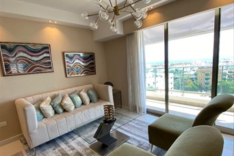 Apartamento Familiar con Vista al Mar en La Julia – Santo Domingo en Alquiler 2.500 dólares ?? Disfruta de vivir en un entorno exclusivo, familiar y con todas las comodidades en este amplio apartamento de 130 m² ubicado en el prestigioso sector La Julia, con una hermosa vista al mar. Distribución del Apartamento • Recibidor elegante • Amplio balcón con vista • 2 habitaciones con walk-in closet, baño privado y balcón • Family room cerrado (ideal para oficina o área de TV) • Sala y comedor integrados • Cocina con desayunador • Medio baño de visitas • Cuarto de servicio con baño • Área de lavado independiente Estacionamiento • 2 parqueos techados Amenidades del Edificio • Piscina • Gimnasio equipado • Terraza social • Área de BBQ • Salón multiusos • Salón de billar • Área infantil • Salón de belleza Facilidades y Seguridad • Lobby climatizado • 3 ascensores • Seguridad 24/7 con vigilancia permanente 100 % amueblado ¿Te gustaría agendar una visita? ¡Contáctanos para más información y conoce tu próximo hogar frente al mar!