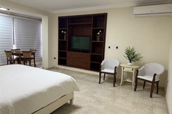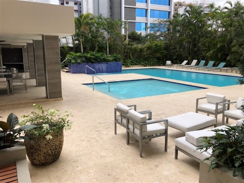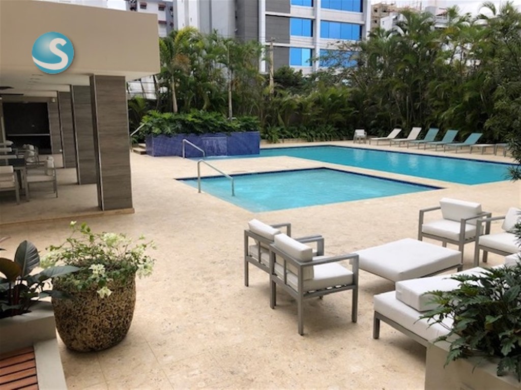 Excelente apartamento en Alquiler Amueblado, ubicado en Torre Premium en el centro de la Ciudad de Santo Domingo. Cerca de medios de transporte, colegios, Instituciones Financieras, Centros Comerciales y super mercados. El apartamento se encuentra completamente amueblado y tiene vista panorámica. La torre cuenta con una excelente Área Social, la cual consta de: Lobby, Piscina de adultos, piscina de niños, Terraza, zona de Barbecue y de actividades, Gym, Canchas deportivas, 3 ascensores, y seguridad 24 horas. Precio de alquiler: US$5,500 mant. incluído. Por citas.