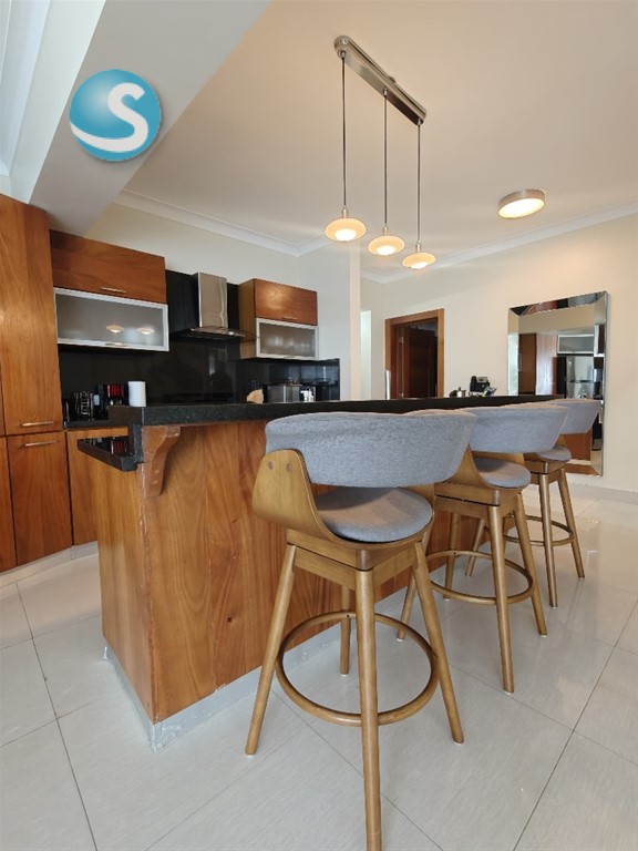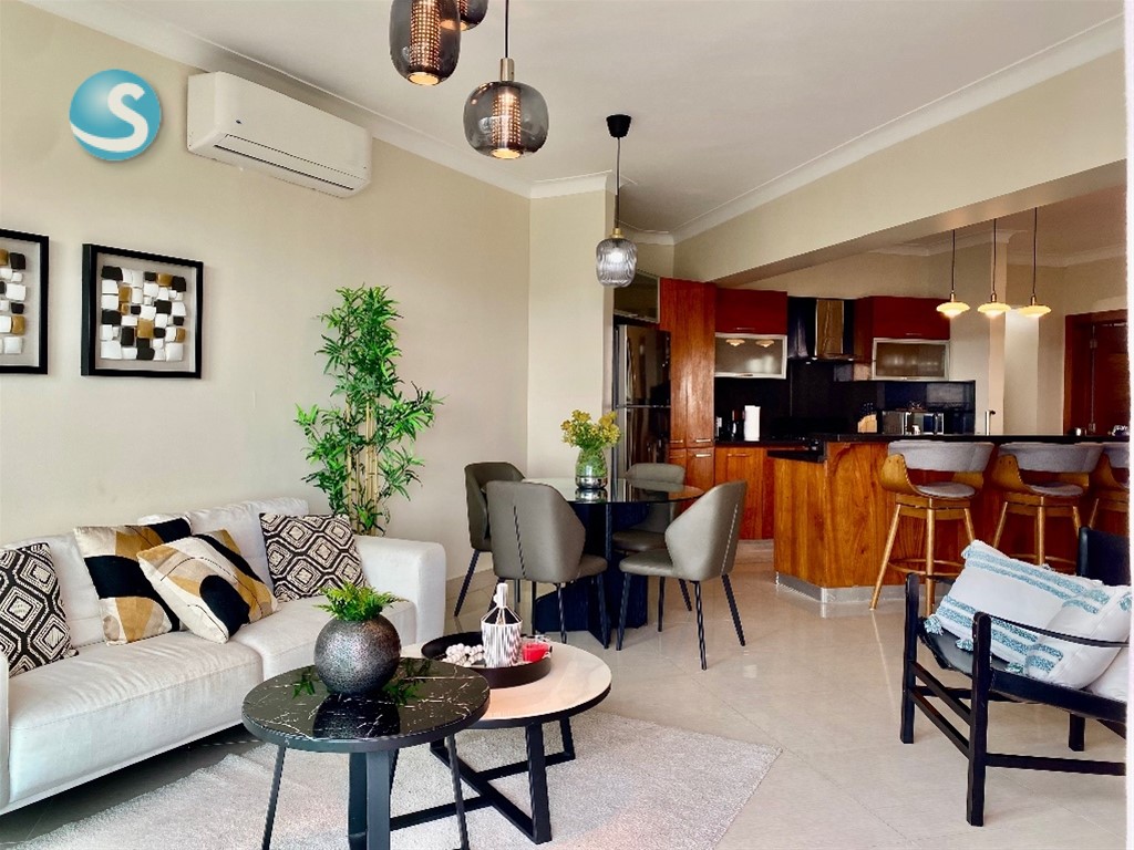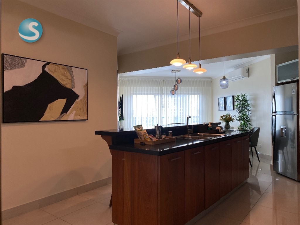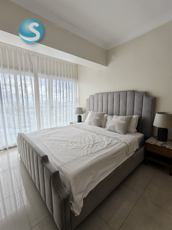 Anabel Castillo Contacto:(809) 906-3126 Vive con estilo y confort en este elegante apartamento amueblado ubicado en el exclusivo sector La Julia, con una impresionante vista al mar y espacios diseñados para el máximo disfrute. Con 128 metros cuadrados, el apartamento ofrece una distribución amplia y funcional que incluye sala–comedor, cocina con acceso a un balcón con vista al mar, 2 habitaciones, cada una con excelente iluminación, 2.5 baños, área de lavado y 2 parqueos, La torre cuenta con completas amenidades tipo resort, ideales tanto para vivir como para inversión: • Gimnasio • Piscina • Sala de cine • Spa • Lavandería • Área de BBQ Precio de alquiler amueblado: US$1,700