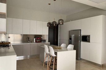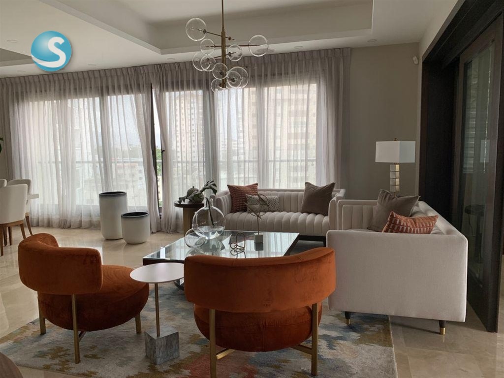 Apartamento de Lujo en Torre Barlovento – Piso 7 (279 m²) Amplio, elegante y con una distribución pensada para el confort, este apartamento ofrece una experiencia de vida exclusiva en una de las torres más completas de Santiago de los Caballeros. Características Principales 279 m² de construcción Balcón con vista panorámica Sala, sala de estar y comedor Cocina equipada con vinera, nevera, estufa, horno, extractor y microondas Cocina fría con isla en cuarzo 3 habitaciones, cada una con walk-in closet, baño privado y aire acondicionado Habitación de servicio con baño Medio baño para visitas 2 parqueos soterrados Acabados y Detalles Línea blanca completa y aires acondicionados instalados Pisos en mármol y terminaciones en roble Techos en sheetrock con luces LED Ventanas corredizas M100 Calentador de gas y cocina caliente Sistema de alarma integrado Amenidades Exclusivas Lobby amueblado Gimnasio Área de juegos para niños Sala de estar común equipada con kitchenette y aire acondicionado Terraza destechada con vista panorámica Área de BBQ y amplias áreas verdes Estar para choferes Parqueo para visitas Ascensores panorámicos Seguridad 24/7, cámaras e intercom con video Planta full, cisterna y portón eléctrico Ubicación: Santiago de los Caballeros