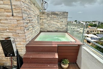 Penthouse en colina de los ríos en venta Sala Balcón Comedor Cocina Área de lavado Cuarto de servicio 3 habitaciones 2 Baño Baño de vista 2 parqueo Terraza Picuzzi 230 metros 78 de terraza 5 y 6 piso Lobby Seguridad 24h Intercom Precio de venta;9MM