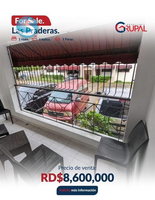Venta de 1er piso en Las Praderas?? ?????????????????????????????? ?????? ?????????????????????? ??2 habitaciones ??1 baño ??Sala ??Comedor ??Cocina ??Balcón ??Área de lavado ??Habitación de servicio ??1 parqueo ?????????????????????????????? ?????? ?????????????????????? ??Proyecto cerrado ??Garita de seguridad ??Portón eléctrico ??Luz 24 hrs ???????????? ???? ?????????? RD$8,600,000???? ? Información: 809-454-7240 Carlos Tejeda