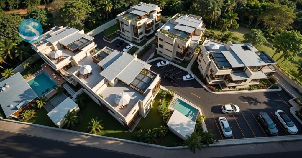 Complejo turístico privado de 5 edificios (28 unidades ) Seguridad integral para protección continua, incluidas cámaras de vigilancia 24/7 Electricidad de áreas comunes Planta eléctrica para suministro ininterrumpido en áreas comunes y 110V en las unidades Fumigación de áreas verdes del condominio Mantenimiento regular de la piscina Servicios de jardinero paisajista para áreas verdes Gastos de mantenimiento de extinguidores Mantenimiento y limpieza de escaleras Conservación y mantenimiento de pisos en áreas comunes