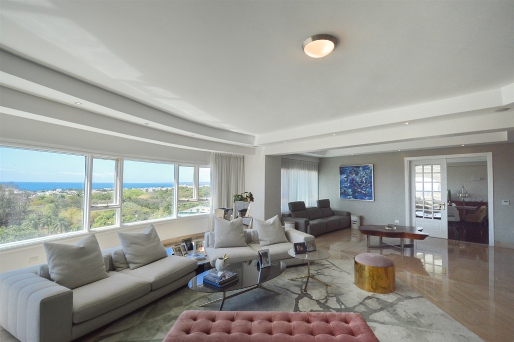 Categoría: Apartamento Sector: Cacicazgo Habitaciones: 4 Baños: 4.5 Metraje: 575 mt2 Parqueo: 4 Locker Recibidor Amplia Sala Comedor formal Comedor de diario Amplio cuarto de vajilla Amplia cocina Posibilidad para cocina caliente 3 Ascensores Apartamento uno por piso Estudio Área de lavado Área de servicio Impresionante vista al parque Áreas Sociales: Gimnasio Jacuzzi Piscina Área techada Área de bbq Cancha de tenis Salón multiuso Lobby doble altura de lujo Terraza destechada Precio de Venta: US$ 1,300,000 Mantenimiento: RD$ 40,000