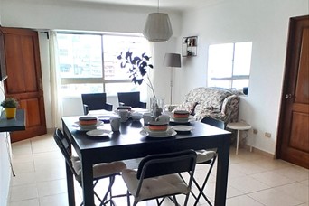 Apartamento en la una de las mejores zonas de los Cacicazgos Totalmente Amueblado Dos habitaciones Dos Baños Baño y walking closset en la principal Sala comedor Cocina Espacio para lavadora secadora Lobby amueblado Dos ascensores Planta full Gas común Un parqueo techado Portón electrónico Seguridad 24/7