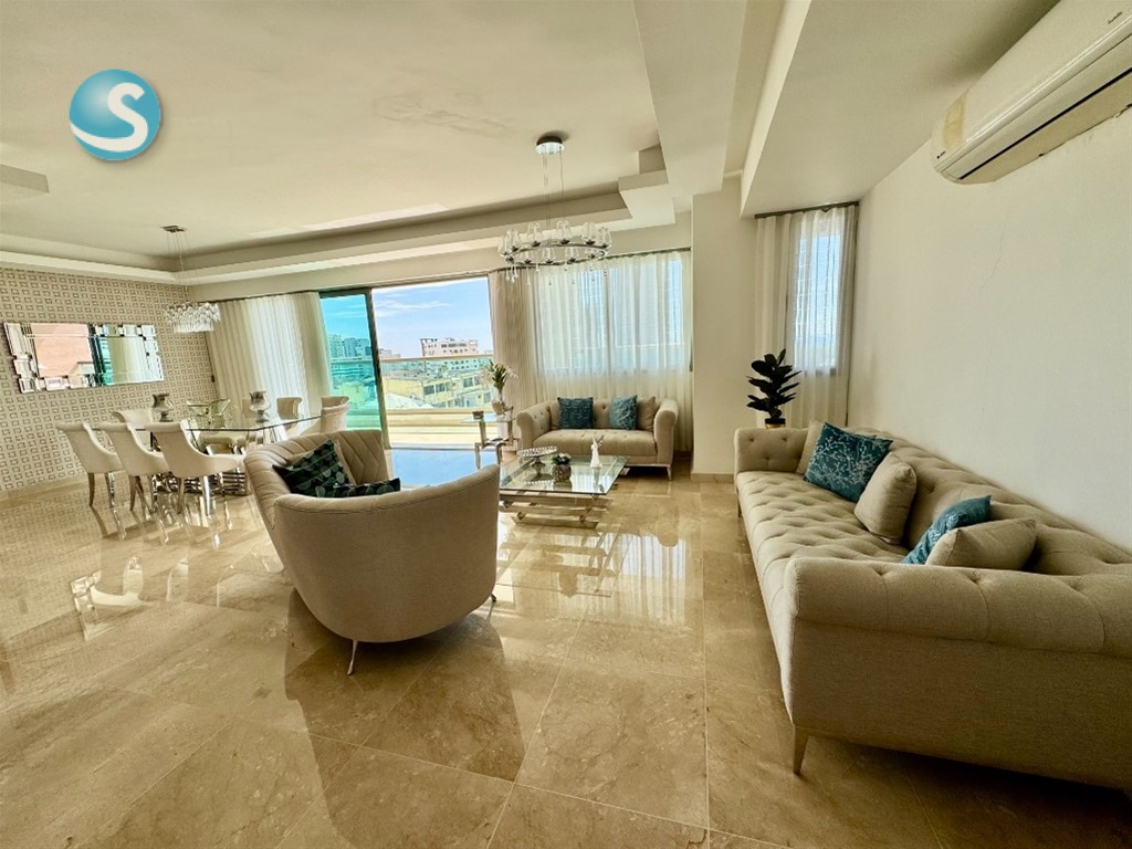 Alquilo apto amueblado de 3 hab - mejor area social de la zona ** con vista al mar ** 205 m2 neto 3 habitaciones 3.5 baños estudio sala - comedor amplio balcon con vista al mar cocina area lavado cuarto de servicio con su bano 3 parqueos Area social con Piscina, gimnasio, area infantil, area de BBQ, jacuzzi, salon multiuso Alquiler: US$ 3,200 amueblado ID: EB-CZ6606 Para más información y fotografías adicionales, visita nuestro portal. https://www.tropical-livingdr.com/property/alquilo-apto-de-3-hab-mejor-area-social-de-la-zona?agent=oficinat_1
