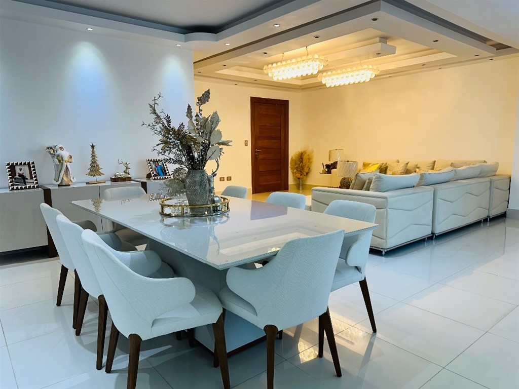Agente: Yosmary Arcia Contacto: (829) 859 4753/849 856 5217 Sector: Cacicazgos Metraje: 287 mts Precio de Alquiler Amueblado: US$3.000 Apartamento Finamente Amueblado, areas Sociales con piscina gyms, Segunda con Terraza amplia, Ubicación exclusiva en la Av. Enriquillo cercano al parque Mirador Sur. en el sector de Cacicazgos, ideal para quienes buscan Tranquilidad, Comodidad, Elegancia y Características del Apartamento: - 3 habitaciones, cada una con baño privado y walk-in closet - Sala amplia y luminosa - Comedor - Cocina - Estar familiar - Terraza Amplia tipo ele - Baño de Visita - Cuarto de servicio con baño - Área de Lavado - 2 parqueos Techado Amenidades del Edificio: - Gimnasio equipado - Piscina - Terrazas sociales - Área de Niños - 3 ascensores de alta velocidad - Seguridad 24/7 - Lobby Climatizado Contáctenos para más información o agenda una visita.