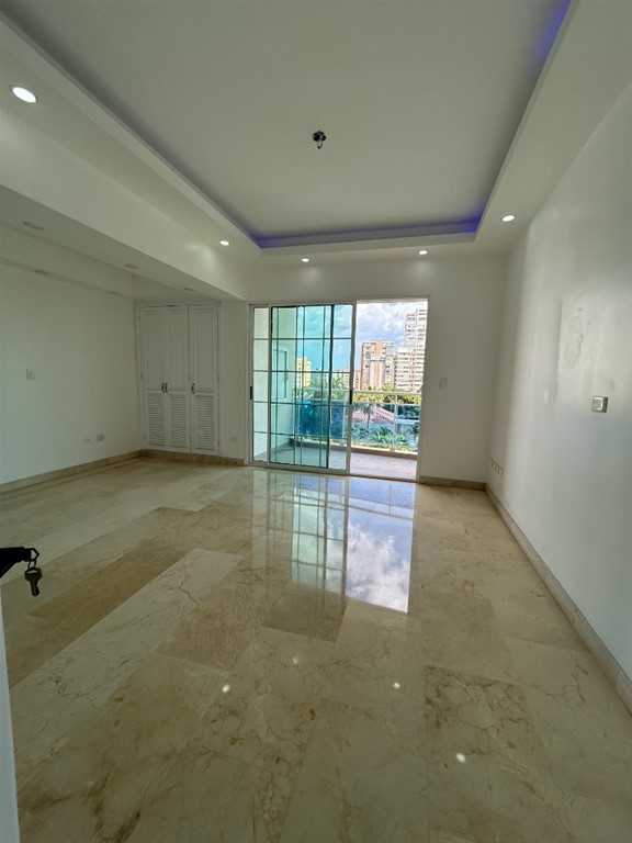 Se vende amplio apartamento en Cacicazgos •Piso 4 •300m2 •3 habitaciones C/U con su baño y walking Clóset •Estudio cerrado •Sala •Comedor •Cocina fría y cocina caliente •Baño de visitas •Habitación de servicio •Área de lavado •2 Parqueos •Lobby •2 ascensores •Ascensor de carga Precio de venta: US$450,000