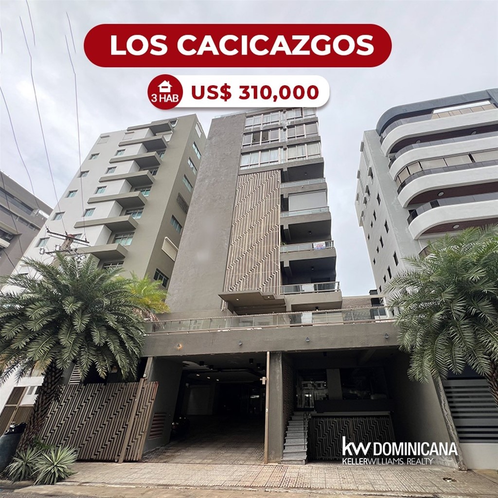 Apartamento en Venta – Los Cacicazgos! Ubicación privilegiada próximo al Parque Mirador Sur, plazas comerciales, restaurantes, colegios y clínicas. Características de la Torre: • Torre de 10 niveles (construida en 2020) • 2 apartamentos por piso • Lobby amueblado y recibidor • Ascensor • Área social con salas, bar y gimnasio • Cuarto de choferes y área de conserjería • Portón eléctrico • Pet friendly • Airbnb permitido Características del Apartamento: • 4to piso – 181.32 m² • 3 habitaciones • 3.5 baños • Sala - Comedor • Cocina de concepto abierto • Balcón • Habitación de servicio • Área de lavado • 2 parqueos paralelos • Sistema de shutter Precio: US$310,000 • Mantenimiento: RD$13,500 Vive en una de las zonas más exclusivas de Santo Domingo, con estilo moderno y todas las comodidades. Sugeiley Ozuna 809-885-0795 Kw Capital