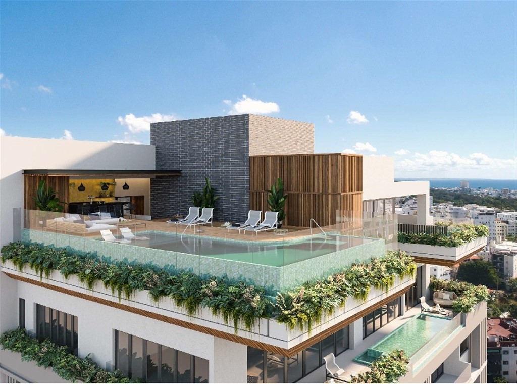 Citymax Platinum Vende Apartamentos de lujo en el exclusivo sector de Los Cacicazgos. Los Cacicazgos, uno de los sectores más exclusivos y cotizados de Santo Domingo, se consolida como un punto clave para la inversión inmobiliaria de alto nivel. Este proyecto cuenta con una edificación alta, esbelta y elegante, compuesta de volúmenes puros que resaltan un estilo de diseño minimalista, con grandes ventanales que maximizan las vistas hacia la ciudad, al parque mirador sur y al mar; generando una permeabilidad en ventilación e iluminación. Interiores conceptuados con espacios abiertos, cocinas integradas con isla desayunador y amplios ventanales para generar luz y ventilación. La distribución interna mantiene un lenguaje de privacidad, amplitud y disfrute visual. Pisos en mármol, terminaciones de baños en porcelanato y cocinas modulares de CARABELA en colores neutros y naturales. Áreas sociales y Lobby cuentan: Finos y modernos acabados – Amueblamiento – Climatización - Diseño en luminarias - Sonido ambiental. • Terraza ambientada • Piscina • Área Bar y BBQ • Boxing Gym • Kids Club • Cine • Salón • Baños Características del Generales: • Lobby climatizado y con sonido ambiental • 3 elevadores (2 de uso general y 1 de servicio) • Acceso para valet parking • Acceso para minusválidos • Doble acceso vehicular a la torre • Parqueo de visita • Oficina administrativa • Estar Común para choferes y empleados de la torre. Acabados Generales: • Pisos generales en mármol. • Pisos de balcones en porcelanato by Carabela. • Terminaciones de baños en porcelanato by Carabela. • Cocinas modulares by Carabela. • Puertas en acabados en madera natural. • Video portero by Bitticino. Características de los apartamentos: • Apto Tipo C2 185 M2 • Recibidor • Sala – Comedor • Cocina con isla desayunador • 2 habitaciones con baño, principal con w/c • Baño Visita • Terraza • Habitación servicio con baño • Área de lavado • 2 parqueos Plan de pagos: 1.- 10% de separación y firma de contrato. 2.- 40% en el proceso de construcción: 3.- 50% contra entrega. Fecha Entrega: 2026-07-30 Clave interna: PVA-008-05-25-2