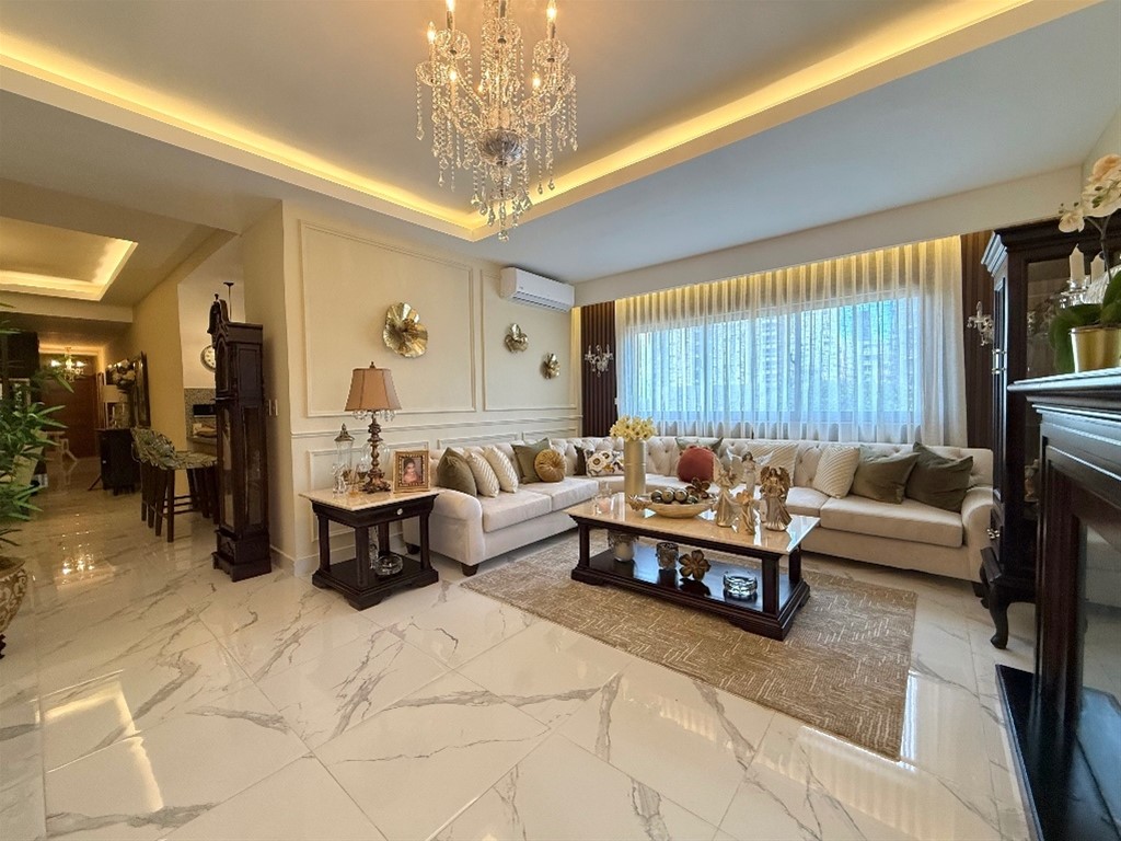 LOS CACICAZGOS Apartamento en Moderna Torre Familiar con ubicación privilegiada en calle tranquila a solo pasos del Parque. PRECIO US$390,000 - 162 metros neto - 3 habitaciones con walking closet - 3.5 baños - ?Amplio Balcón frontal - Amplia Sala - Amplio Comedor - Cocina con desayunador - Cuarto de servicio - Área de lavado - 2 parqueos paralelos - Shutters | Mallas de protección Amenidades: * Jacuzzi * Terraza Amueblada * Gimnasio equipado * Área de BBQ * Lobby Amueblado * Dos (2) Ascensores * Planta Eléctrica Full