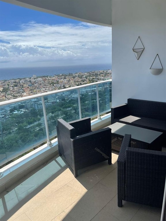 Los Cacicazgos Vista al mar Piso 21 214 metros Balcón 3 habitaciones 3.5 Baños Estudio 4 Parqueos Sala Cocina Área de lavado Cuarto de servicio Amenidades de la Torre: Aire Central Área de BBQ Área de juego de niños 2 Ascensores Consejería Entrada vehicular al Lobby Lobby aclimatado amueblado Piscina Planta Eléctrica Full Salón multiusos Salón P/Eventos y Actividades Terraza abierta?Terraza techada Precio de Alquiler amueblado US$4,100