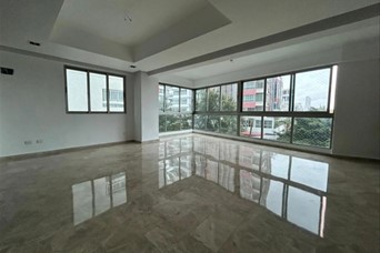 Alquiler de amplio apartamento en exclusivo sector de Los Cacicazgos Piso 3 272 mts 3 habitaciones 3.5 baños Sala Comedor Desayunador Cocina Área de lavado Habitación de servicio 3 parqueos techados Escalera de emergencia Amenidades y características de la torre Portón eléctrico 3 ascensores Luz 24 hrs Cámaras de seguridad Planta full Área de juegos Gimnasio Piscina Salón Multiuso Lobby climatizado Terraza común Gas común Precio de alquiler US$2,500
