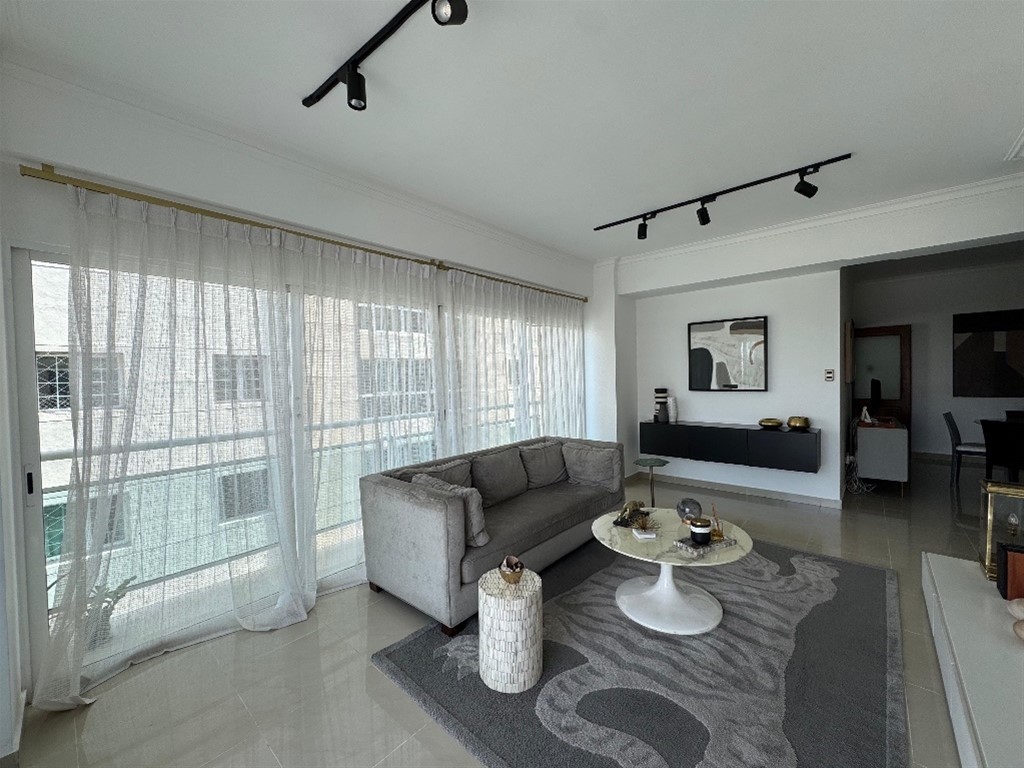 Los Cacicazgos Amueblado Hermoso apartamento amueblado ubicado en la Avenida Enriquillo, con vista frontal limpia y excelente distribucion Piso 6 150 Metros Balcón amplio 3 habitaciones 2.5 baños Recibidor Sala Comedor Cocina Area de lavado Cuarto de servicio con baño 2 parqueos Cuenta con: Lobby Planta full Gas comun 2 ascensores Porton electrico Seguridad Precio de alquiler amueblado: US$1,900 (Mantenimiento incluido)