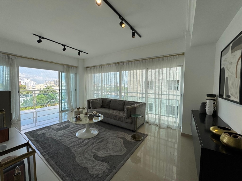 Los Cacicazgos, Amueblado Hermoso apartamento amueblado ubicado en la Avenida Enriquillo, con vista frontal limpia y excelente distribucion Piso 6 150 Metros Balcón amplio 3 habitaciones 2.5 baños Recibidor Sala Comedor Cocina Area de lavado Cuarto de servicio con baño 2 parqueos Cuenta con: Lobby Planta full Gas comun 2 ascensores Porton electrico Seguridad Precio de alquiler amueblado: US$1,900 (Mantenimiento incluido)