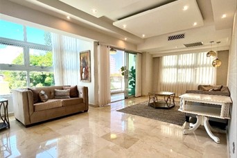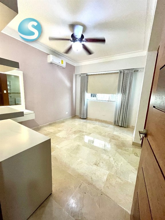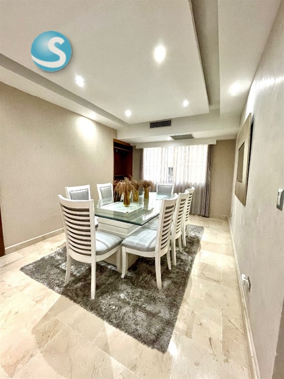 Cacicazgos. Alquiler apto. Amplio de 3 habitaciones, semi amueblado y pisos en Mármol! Torre familiar ———————————————————————————————— Características: - 238 Mts2 - 3 habitaciones ( cada una con sus baños y walking clósets forrados en Cedro) - 3 baños completos - Baño de visitas - Doble sala - Comedor - Balcón - Recibidor - Estar familiar - Cocina - Área de lavado - Cuarto de servicio con su baño - 2 parqueos techados y paralelos en 1er nivel - 3er piso - Shutters en balcón y ventanal lateral Terminaciones: •Pisos en mármol? •Portajes y gabinetes en Roble •Ventanas corredizas Sobre la torre: - Lobby climatizado - Conserje 24/7 - 2 ascensores - Planta Full - Gas común - Terraza destechada - Pequeño GYM ———————————————————————————————— Precio de alquiler: - USD$2,600.00 ( semi amueblado + línea blanca completa + mantenimiento) - USD$2,500.00 ( Línea blanca + mantenimiento incluido) Contáctame,