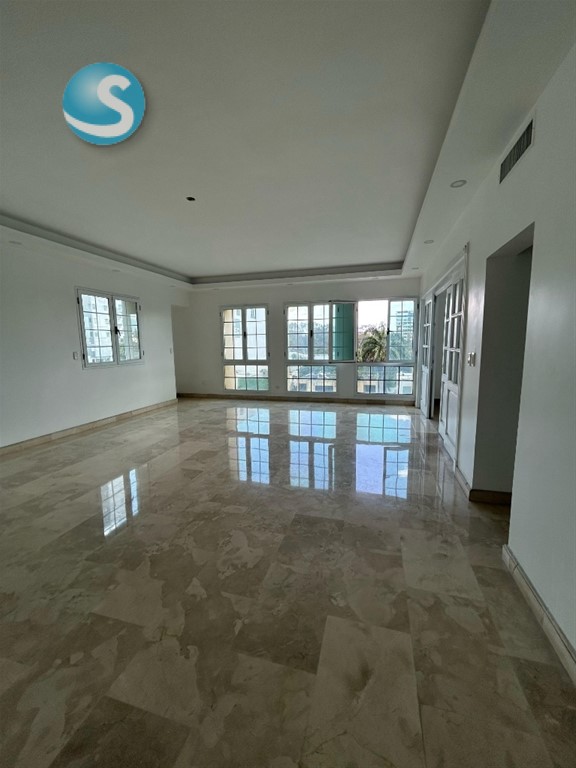 Se vende amplio apartamento en Cacicazgos ?? •Piso 4 •300m2 •3 habitaciones C/U con su baño y walking Clóset •Estudio cerrado •Sala •Comedor •Cocina fría y cocina caliente •Baño de visitas •Habitación de servicio •Área de lavado •2 Parqueos •Lobby •2 ascensores •Ascensor de carga Precio de venta: US$450,000
