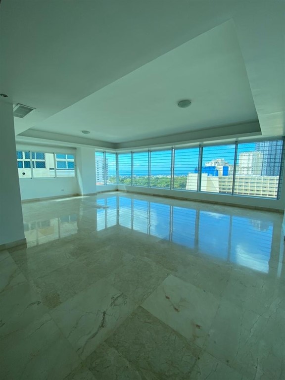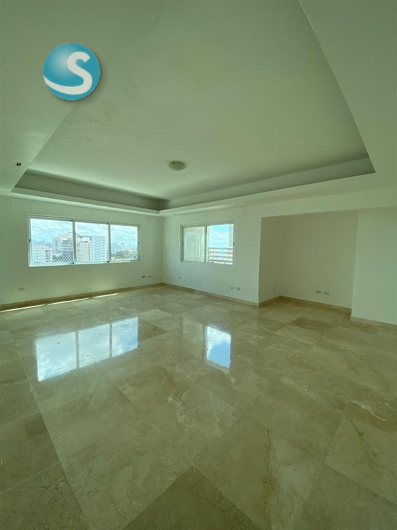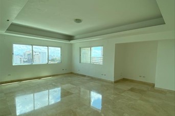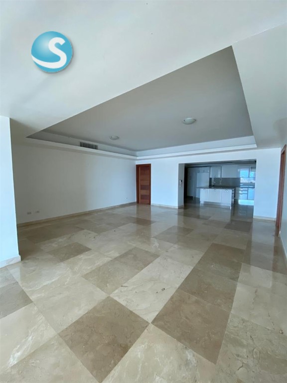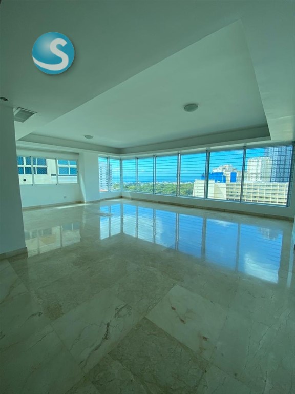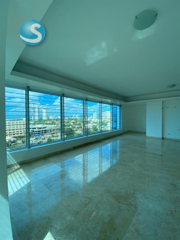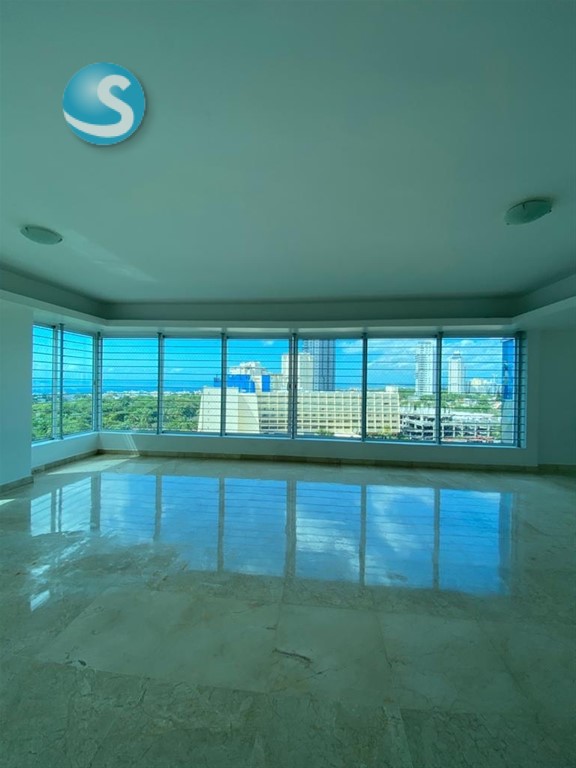 Amplio apartamento en alquiler con vista increíble en Cacicazgos. Detalles y características del apartamento: -300 m2 -Sala -Comedor -Estudio -Cocina fría integrada -Cocina caliente -Área de lavado -Cuarto de servicio -Apartamento en cristal con vista -Pisos en Mármol -3 habitaciones + 3.5 baños -Cada habitación con walk-in closet -2 parqueos Detalles De la Torre: -Lobby -Seguridad por cámara -Doorman -Gas común -Planta eléctrica -2 ascensores -2 apartamentos por nivel