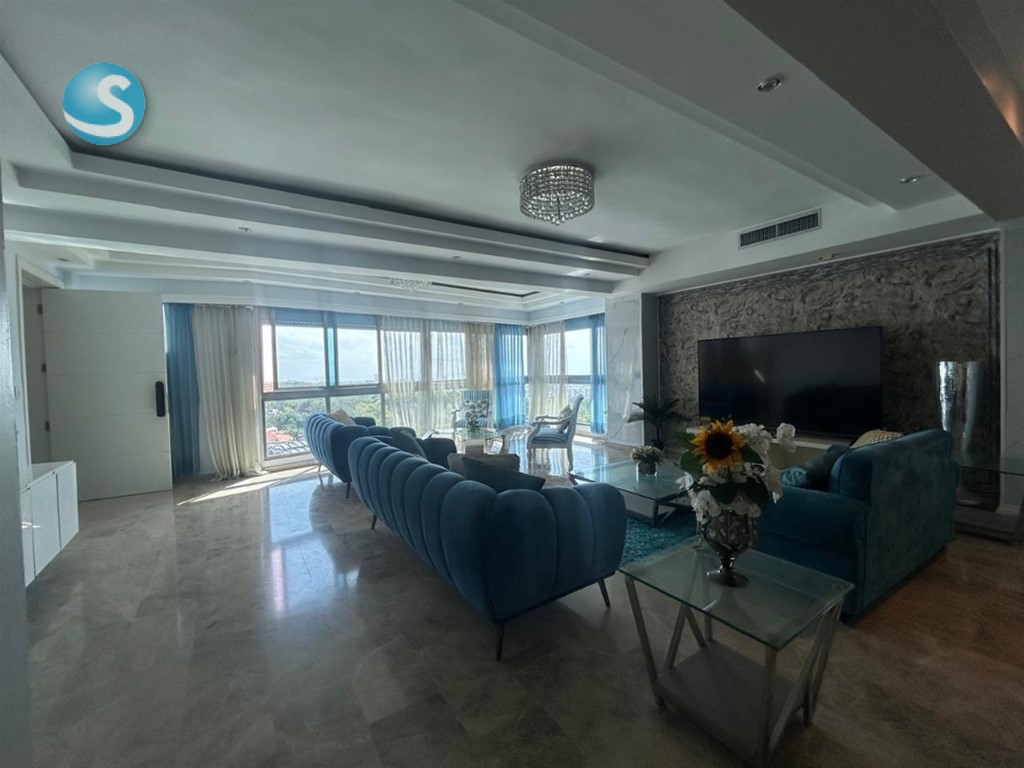 Amplio apartamento Amueblado en exclusivo sector de Los Cacicazgos?? ?????????????????????????????? ?????? ?????????????????????? ??3 habitaciones ??3.5 baños ??Sala ??Comedor ??Desayunador ??Cocina ??Área de lavado ??Habitación de servicio ??4 parqueos paralelos y techados ?????????????????????????????? ???? ???? ?????????? ??Portón eléctrico ??3 ascensores ??Luz 24 hrs ??Cámaras de seguridad ??Planta full ??Área de juegos ??Gimnasio ??Piscina ??Salón Multiuso ??Lobby climatizado ??Terraza común ??Gas común ???????????? ???? ?????????? US$610,000????