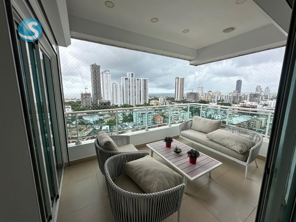 apartamento alquiler amueblado full cacicazgos (torre de lujo) impresionante vista al mar , US 4,800 dólares Piso 13 285 mts 3 hab con Walking closet 3 1/2 baños Sala comedor amplio Sala star Balcón tipo terraza Cocina con desayunador Área de lavado Cuarto de servicio 3 parqueos paralelos techados Ascensor Planta full Piscina techada Gimnasio Salón actividades Salón reuniones Terraza techada Área de niños Lobby climatizado Gas común Planta full Cámaras Seg 24/7 Mantenimiento incluido