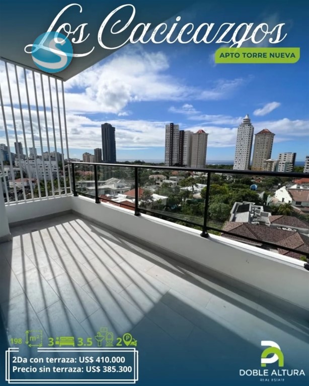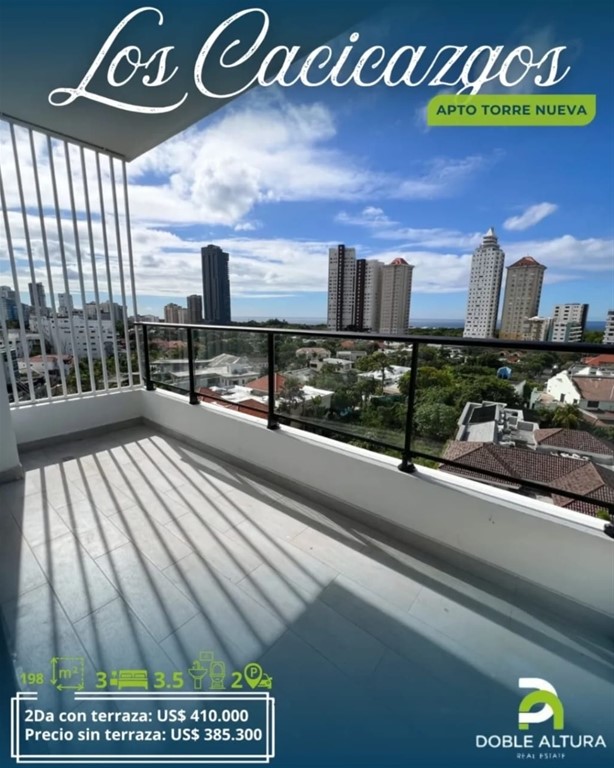 Torre Familiar a estrenar, apartamento de 3 habitaciones con terraza privada, próximo al parque Mirador sur, en los Cacicazgos. 2 unidades Disponibles Precio 2da con terraza: US$410,000 Precio sin terraza: US$385,300 Precio alquiler: US$1,750 Características: -198mt2 + 25 de terraza -3 Habitaciones c/u con Baño -3.5 Baños -Baño de visitas -2 Parqueos -Sala amplia -Comedor -Cocina moderna -Balcón -Área de lavado -Habitación de servicio con su baño -Cerradura digital inteligente Características de la torre: -Lobby -2 Ascensores de ultima generación -Planta Eléctrica full -3 apartamentos por nivel -Terraza Común -Area de niños -Gimnasio -Picuzzi -Salon multiuso -Seguridad 24/7 Listos para entrega
