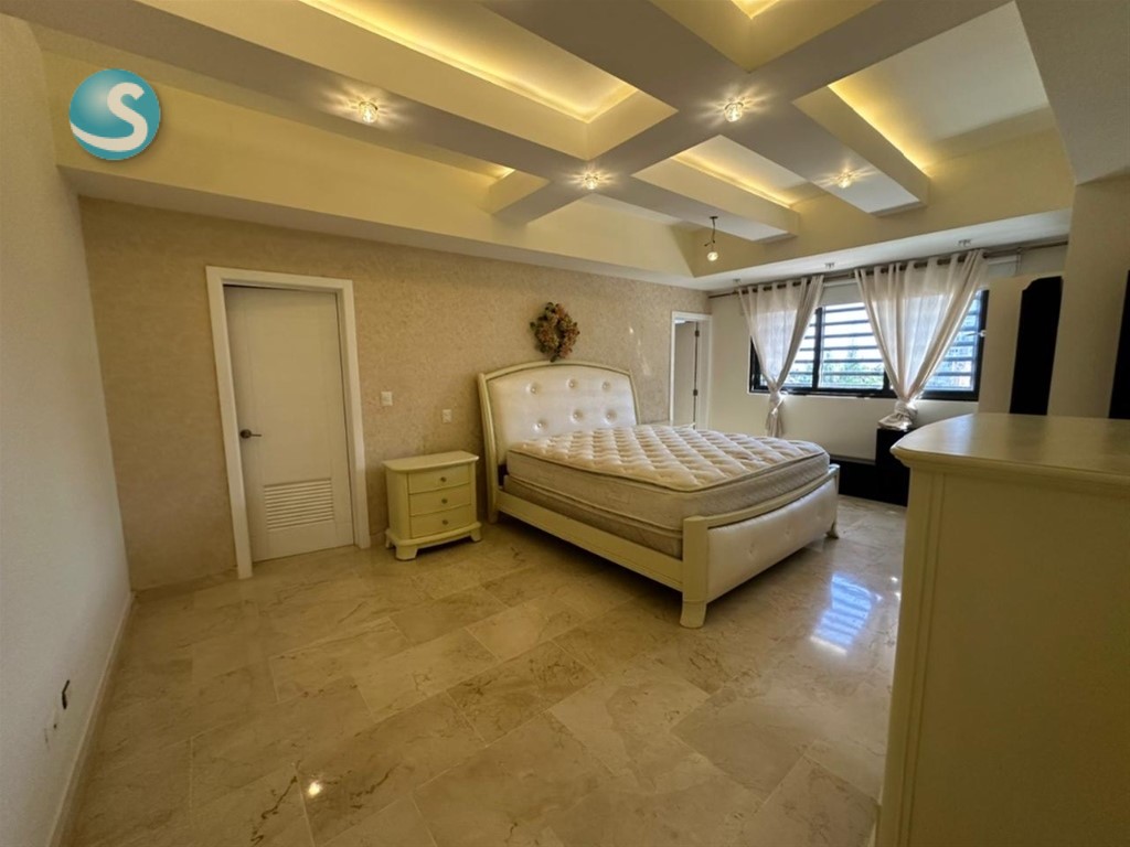 Cacicazgos 304 metros 5to piso 3 habitaciones 3.5 baños Estudio Estar familiar Cocina fría Cocina caliente Sala y comedor separados Balcón Pisos en mármol Área de lavado Cuarto de servicio con baño Escaleras de emergencia Shutter Aires independientes 3 parqueos techados paralelos Locker Lobby amueblado Gimnasio Seguridad 24/7 Planta full Gas común Precio US$695,000 Mantenimiento RD$22,000