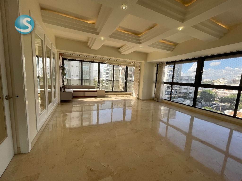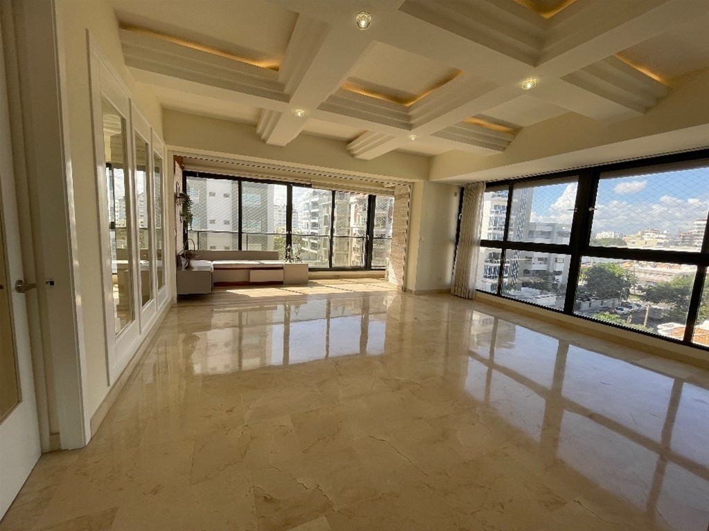 Cacicazgos 304 metros 5to piso 3 habitaciones 3.5 baños Estudio Estar familiar Cocina fría Cocina caliente Sala y comedor separados Balcón Pisos en mármol Área de lavado Cuarto de servicio con baño Escaleras de emergencia Shutter Aires independientes 3 parqueos techados paralelos Locker Lobby amueblado Gimnasio Seguridad 24/7 Planta full Gas común Precio US$695,000 Mantenimiento RD$22,000