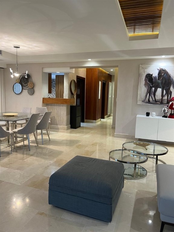Agente Mayka Estrella / Karina Contacto: 849-856-5217 Propiedad: Apartamento Sector: Los Cacicazgos Metraje: 250 mts2 Parqueos: 2 Precio Alquiler: USD$3,800 Apartamento de lujo justo al frente del Parque Mirador Sur / Completamente Amueblado / Piso Alto Características del Apartamento: - 3 Habitaciones con su baño y walkin closet - Sala de estar - Area de lavado - Habitación de servicio con su baño - Cocina - Comedor - Sala - Estudio - Balcón Amenidades de la torre: - Lujoso lobby con vista al mar - Cocina modular - Amplias áreas sociales - Moderno gimnasio - Piscina - Gazebo - Salón para choferes con baño - Salón de reuniones - Sistemas de gas centralizado - Ascensores - Planta full - Portones eléctricos - Terraza ***PERO FIEL ES EL SEÑOR, QUE OS AFIRMARÁ Y GUARDARÁ DEL MAL***