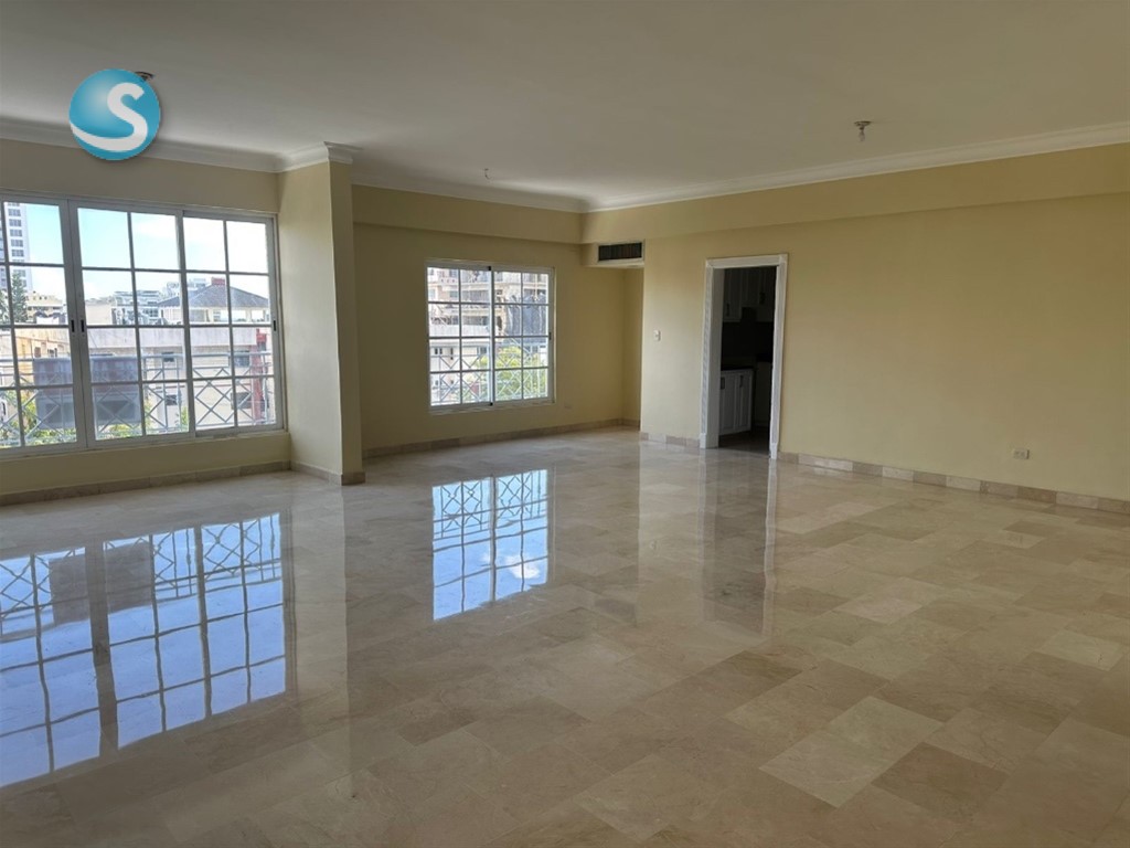 Apartamento en Alquiler – Los Cacicazgos | 270 m² | 3 Habitaciones Apartamento clásico y amplio con excelente ubicación y vista a la Av. Enriquillo. Ideal para quienes buscan comodidad, privacidad y espacios generosos. Descripción del inmueble: • 3 habitaciones, cada una con baño y walk-in closet • Aire central • Sala y comedor • Vista frontal hacia la Av. Enriquillo • Cocina • Cuarto de servicio • Área de lavado • Medio baño de visita • Pisos en mármol • 2 parqueos Amenidades de la torre: • Planta full • 2 ascensores Precio: USD 2,000 (vacío) ?